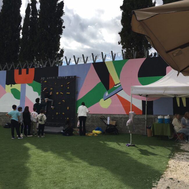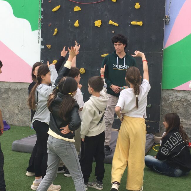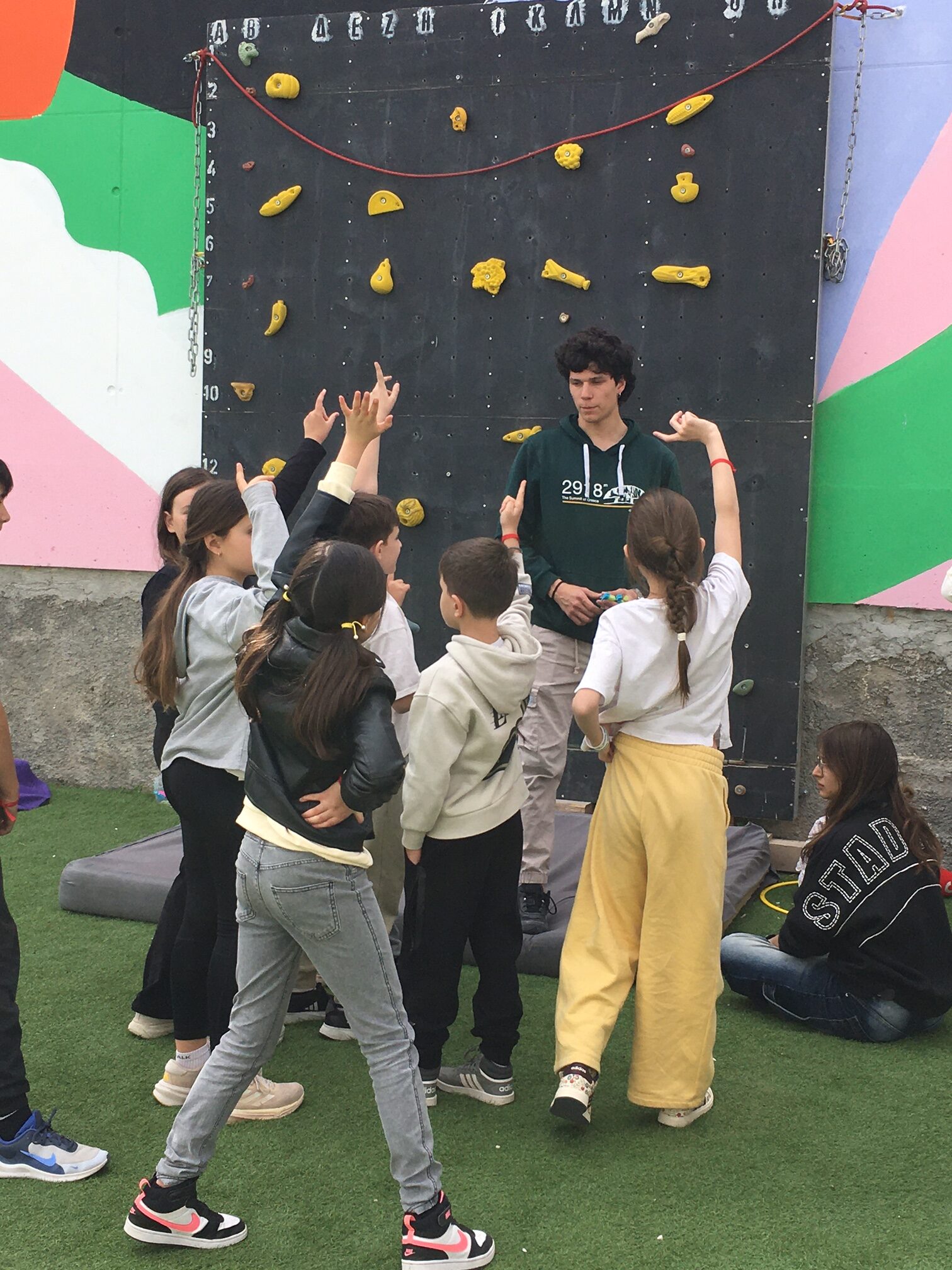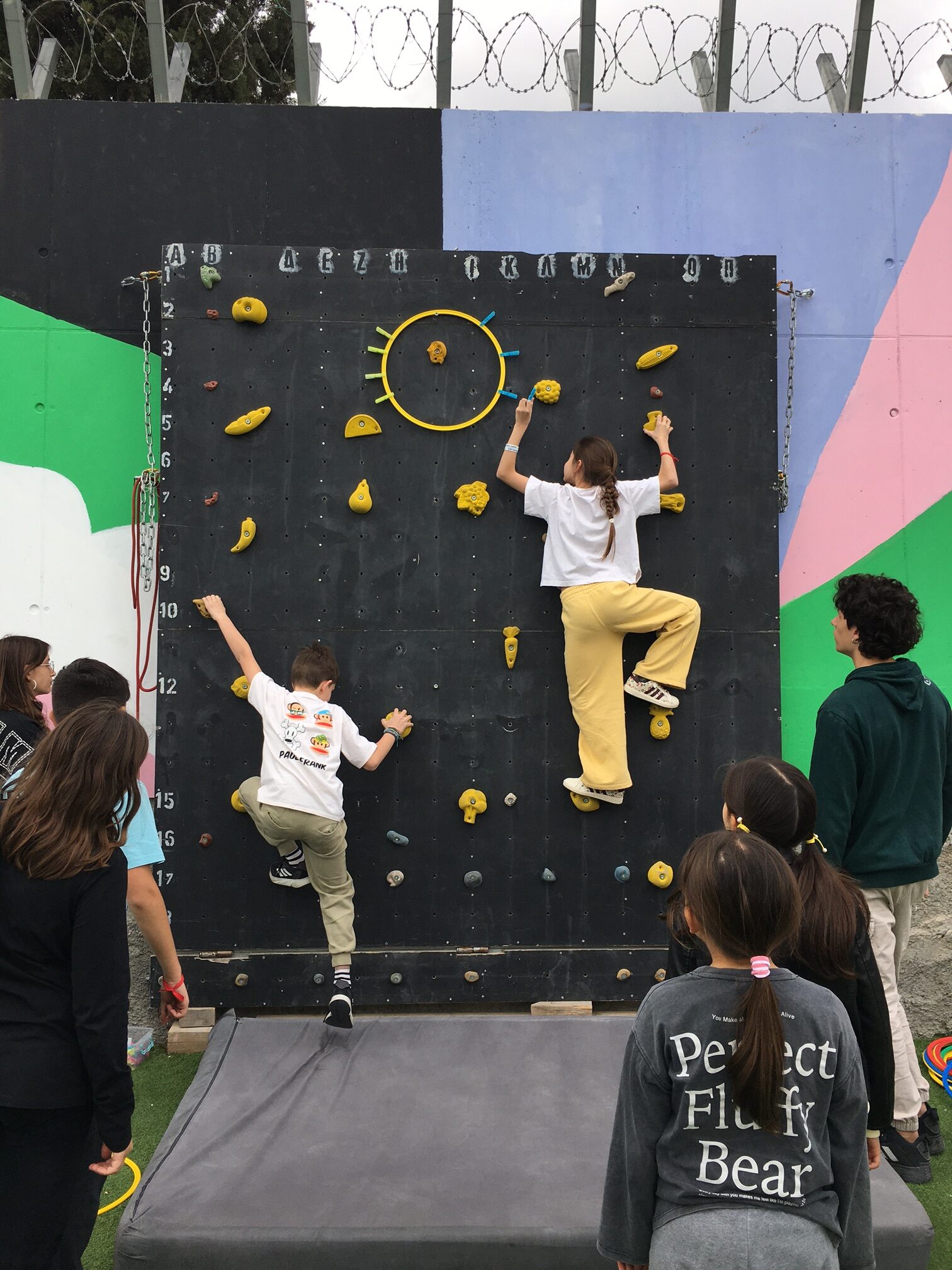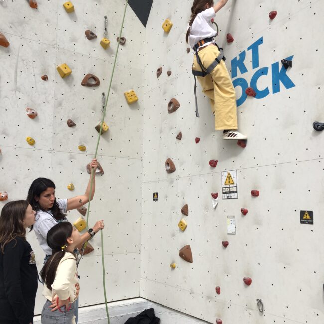 Αναρρίχηση: τα παιδιά θα σκαρφαλώσουν με σχοινί στον εξωτερικό μας τοίχο, που είναι ο,τι πιο κοντινό στην αναρρίχηση σε εξωτερικό περιβάλλον. Κάθε διαδρομή και μια διαφορετική περιπέτεια!